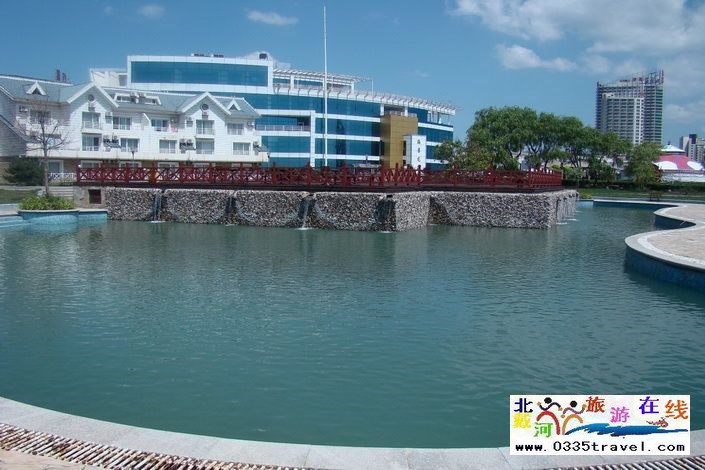 海邊建有沙灘排球場、觀海亭、淡水游泳池、海上木棧橋、釣魚臺等娛樂設(shè)施及帆板沖浪水上運(yùn)動項(xiàng)目。
