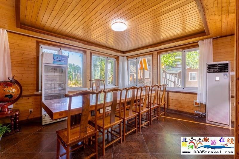 北戴河英倫國(guó)際馬術(shù)俱樂部酒店有餐廳、咖啡間,燒烤露臺(tái)、會(huì)議中心和歐式木制別墅10余座,房間衛(wèi)生整潔、設(shè)施齊全,會(huì)給游客一個(gè)全新的木質(zhì)房屋居住體驗(yàn)。